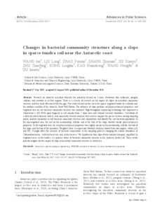 Wang, Jun and Liu, Long and Zhao, Yunxia and Zhang, Xinyuan and Xu, Xiaoyu and Zhu, Xiaofeng and Kong, Lingkai and Cao, Huansheng and Wang, Nengfei and Du, Jiawen (2025) Changes in bacterial community structure along a slope in sparse tundra soil near the Antarctic coast. Advances in Polar Science, 36 (4). pp. 345-355.