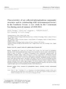 Characteristics of net-collected phytoplankton community structure and its relationship with environmental factors in the Southern Ocean: a case study in the Cosmonaut Sea during austral summer of 2020/2021.