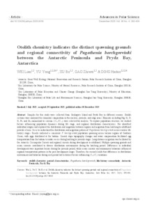Wei, Lian and Yu, Yong and Xu, Bo and Gao, Zhiwei and Ding, Haitao (2025) Otolith chemistry indicates the distinct spawning grounds and regional connectivity of Pagothenia borchgrevinki between the Antarctic Peninsula and Prydz Bay, Antarctica. Advances in Polar Science, 36 (4). pp. 392-404.